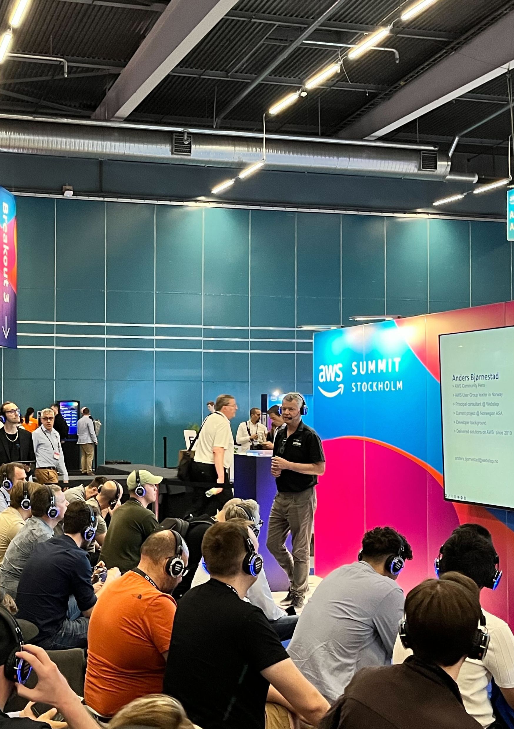 AWS arrangerer for eksempel regionale Summits, som i Stockholm, London og andre byer. Disse konferansene varer vanligvis én dag. Sammenlignet med re:Invent er forskjellene tydelige – både i størrelse og innhold. På Summits er det færre av de mest detaljerte foredragene, og det er også mindre tilstedeværelse av utviklerne fra AWS som jobber direkte med tjenestene.