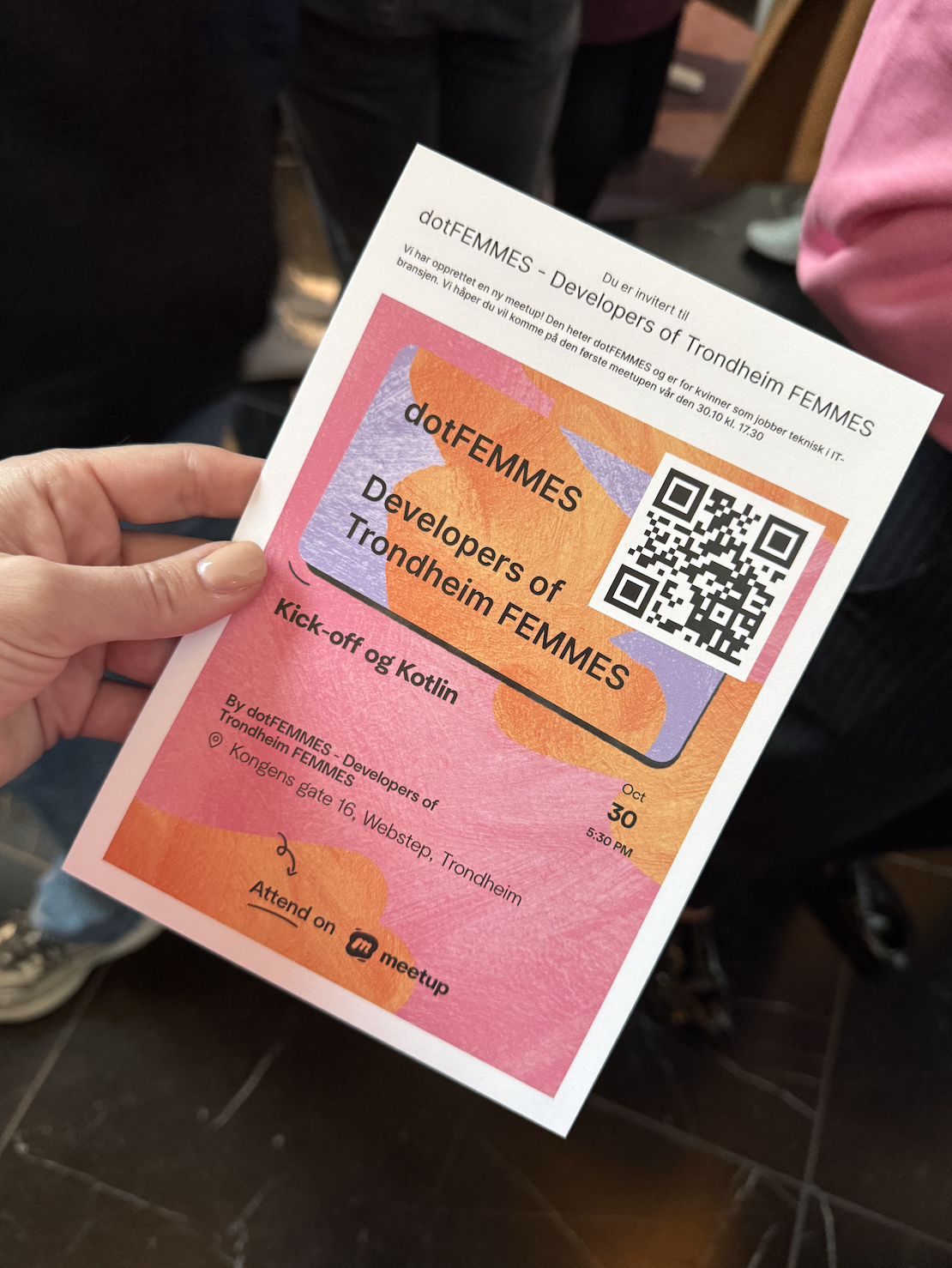 Promotering for dotFEMMES sin første meetup i Trondheim, på TDC.